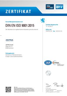 IATF16949 is an international quality management system standard for the automotive industry, created by the IATF (International Automotive Task Force). ASPINA acquired this sector-specific IATF16949 accreditation to meet the needs of the automobile industry, which increasingly calls for the highest possible safety measures.